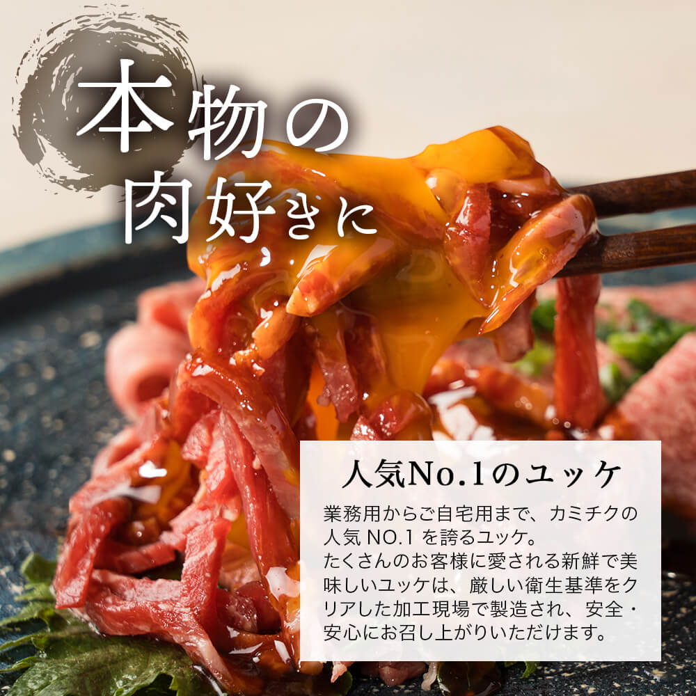 【送料無料】 ISO22000認証取得の生食認定自社工場で製造された安全・安心の黒毛和牛ユッケ・牛刺し。 上質な和牛の味わい、とろけるような口当たりは生ならではの贅沢。 肉本来の旨みを楽しめる牛ユッケ・牛刺しをご自宅でお楽しみいただけます。 |