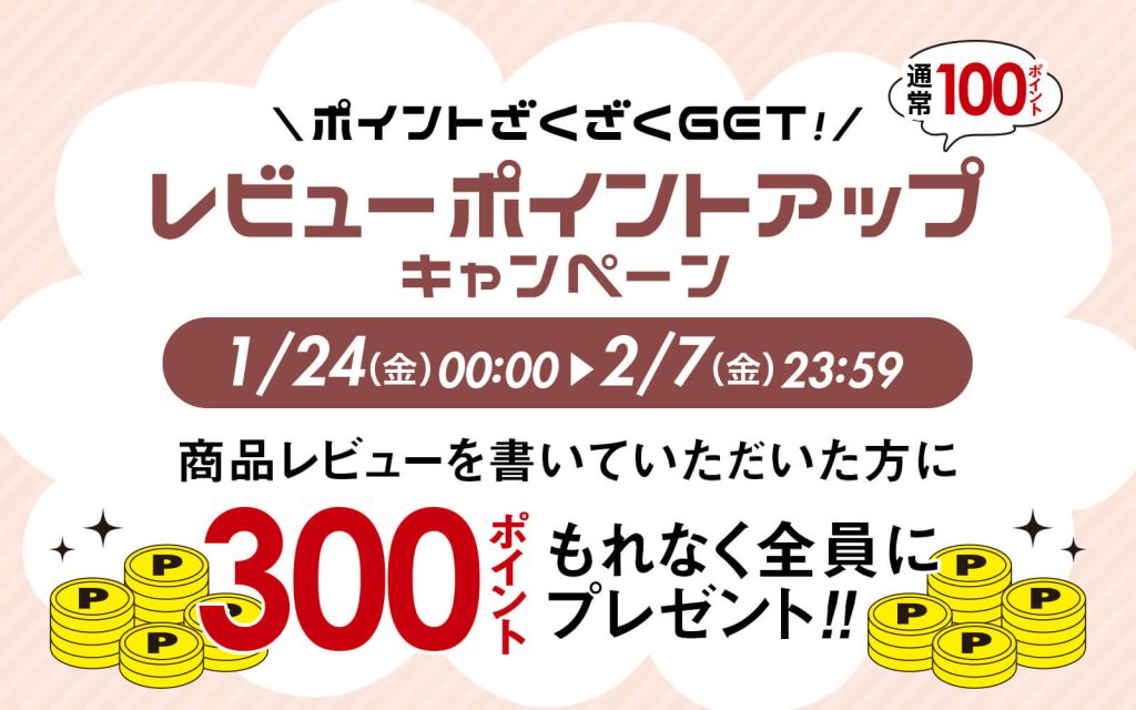 \レビュー投稿で300ポイントGET/レビューポイントアップキャンペーン開催!