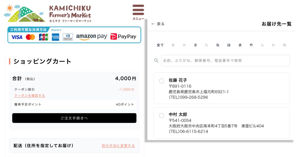 ▲注文完了までのステップが短縮され、送付先も選びやすくなります。